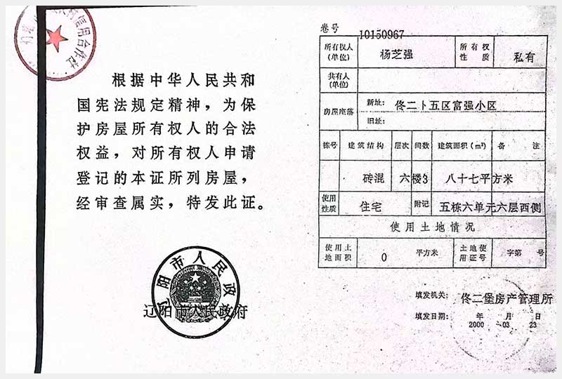 41号 灯塔市佟二堡镇五区富强小区房产及土地使用权