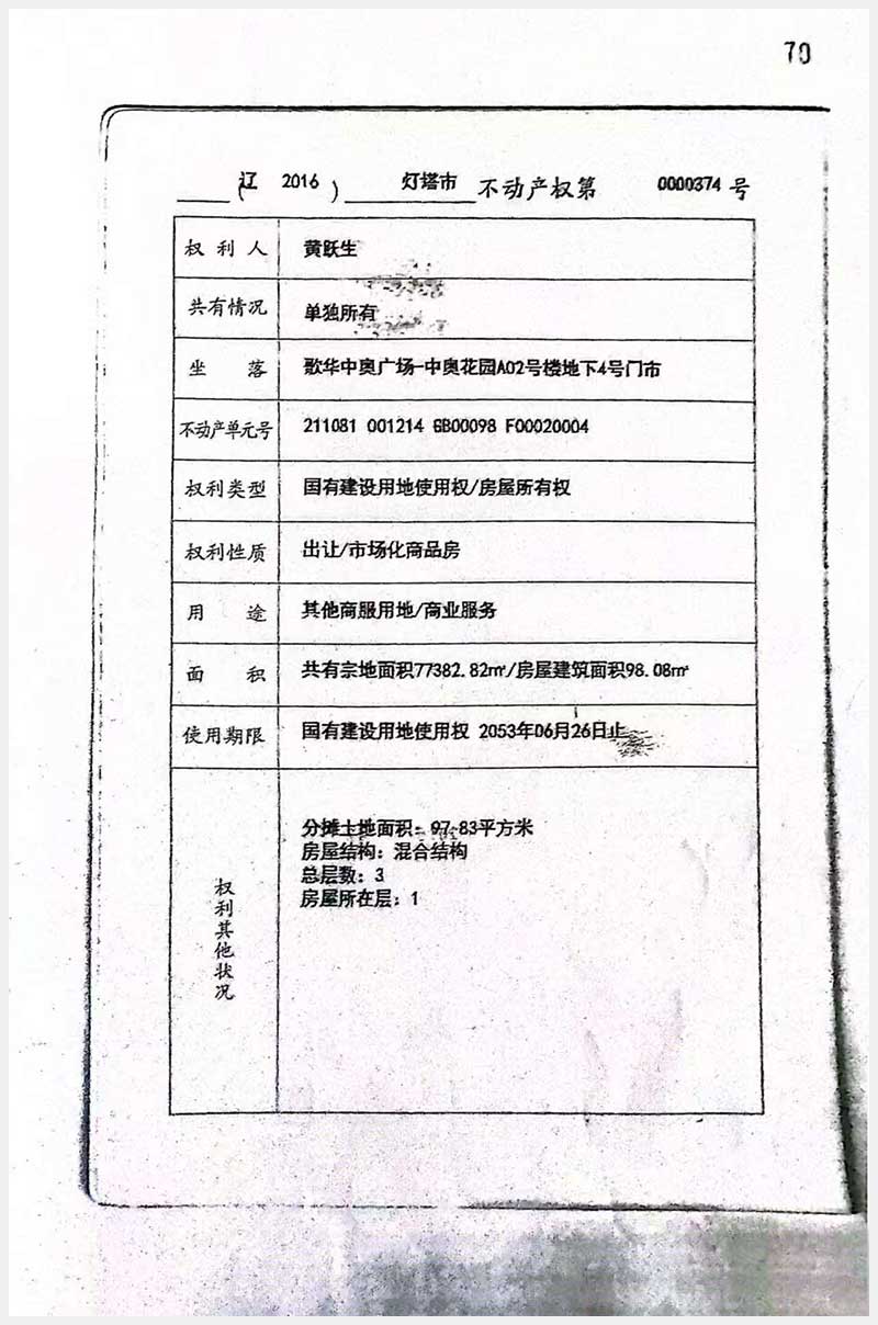 名称:灯塔市歌华中奥广场A02号楼4号、5号房产 面积:4号:270.83㎡;5号:269.51㎡ 浏览次数:293