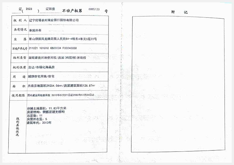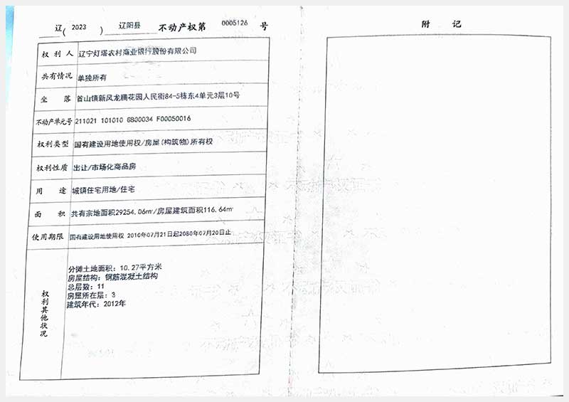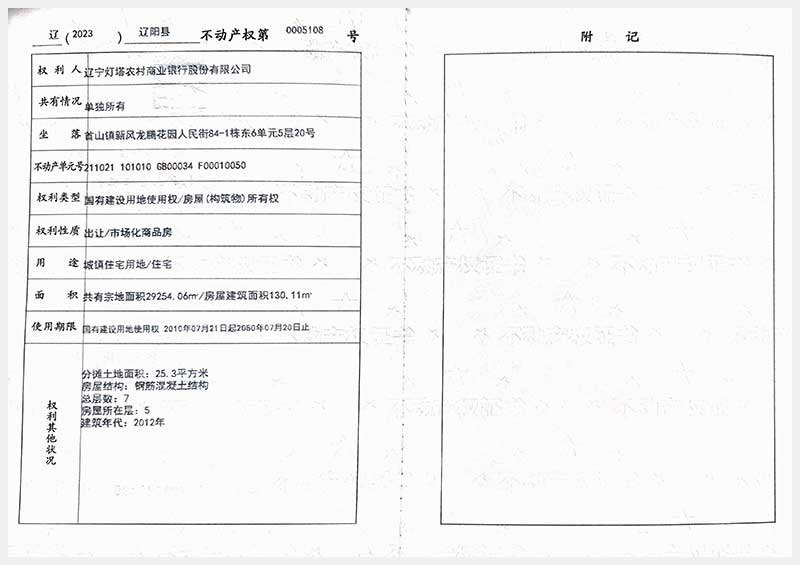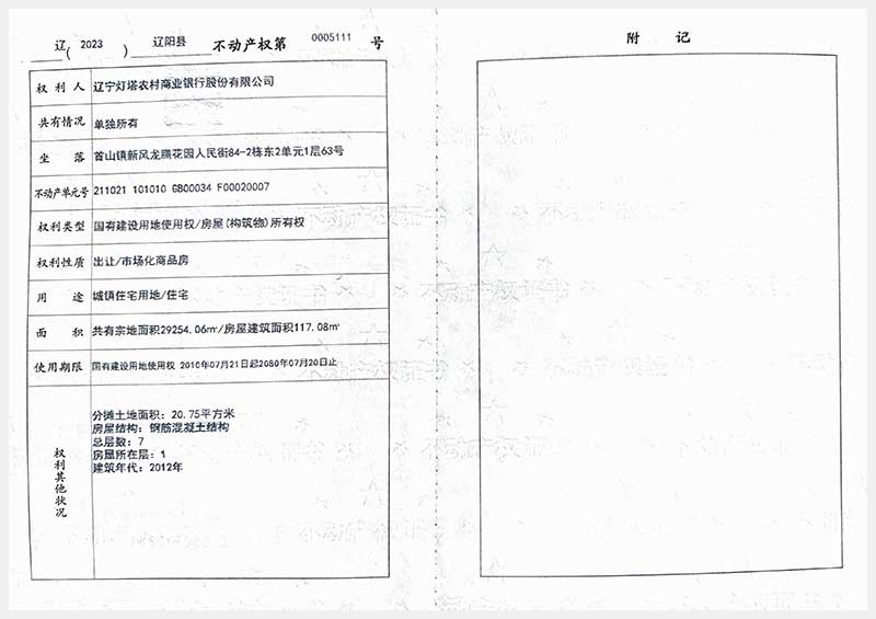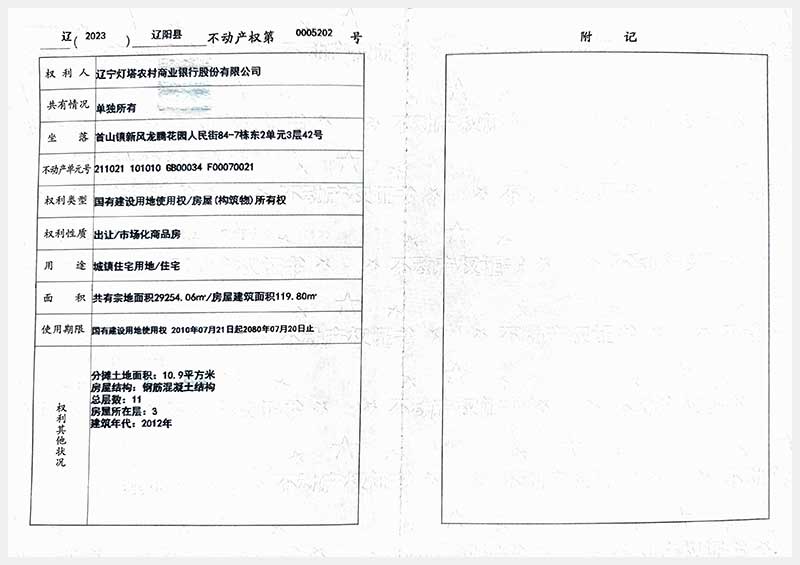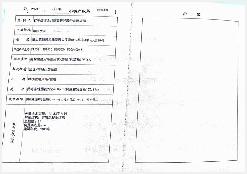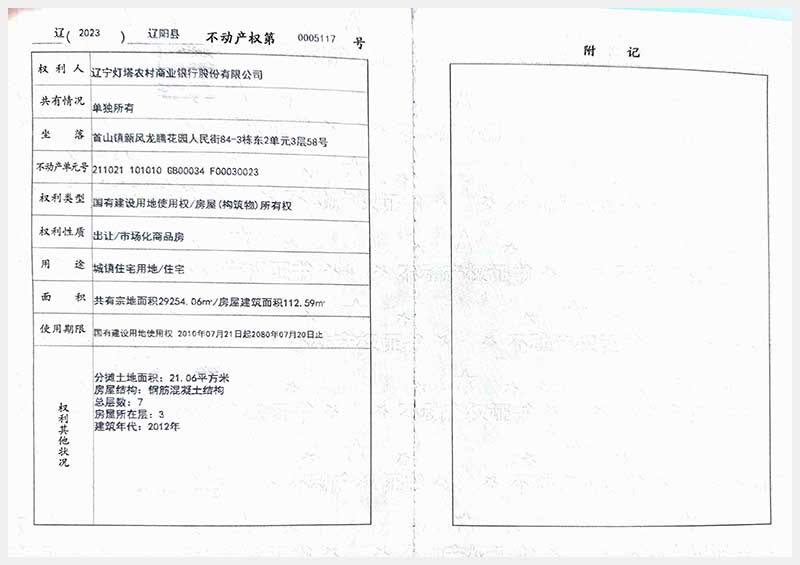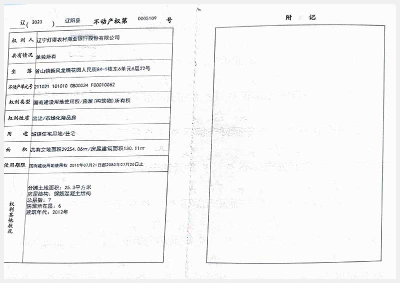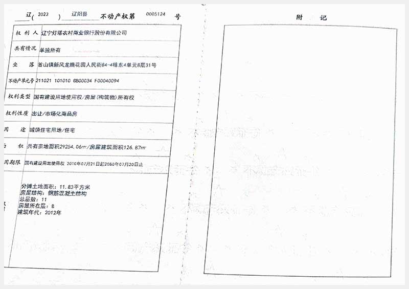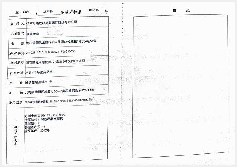 58号 辽阳市首山镇新风龙腾花园人民街84栋房产