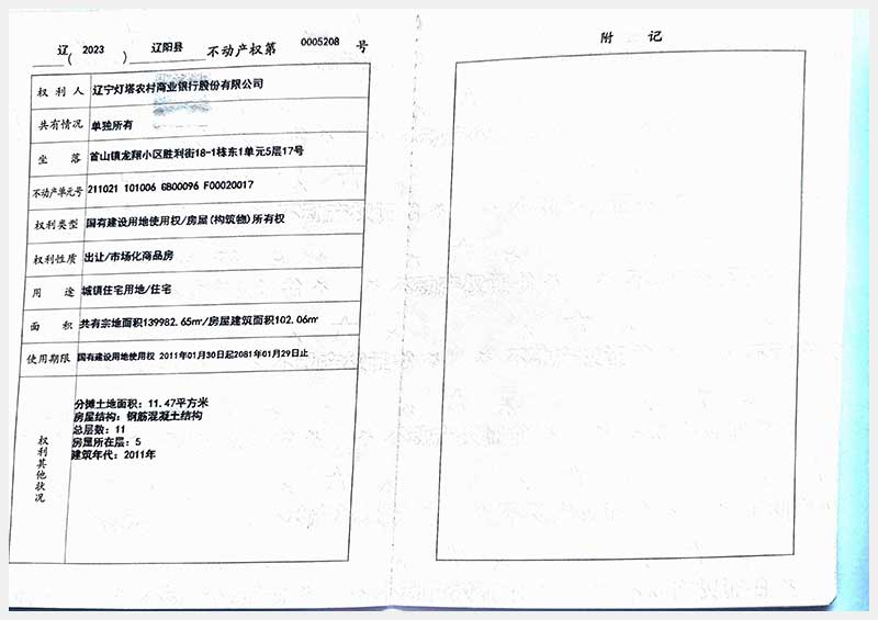 59号 辽阳市首山镇龙翔小区胜利街18栋房产