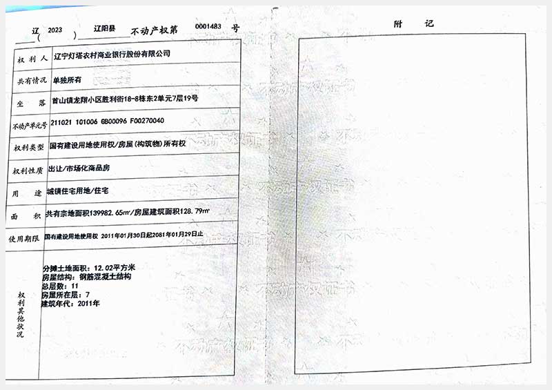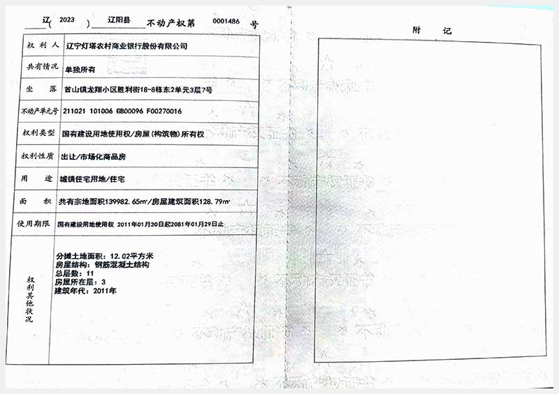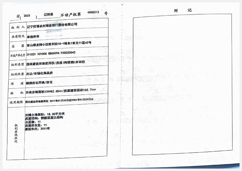 名称:辽阳市首山镇龙翔小区胜利街18栋房产 面积:102.06㎡—162.71㎡ 浏览次数:299