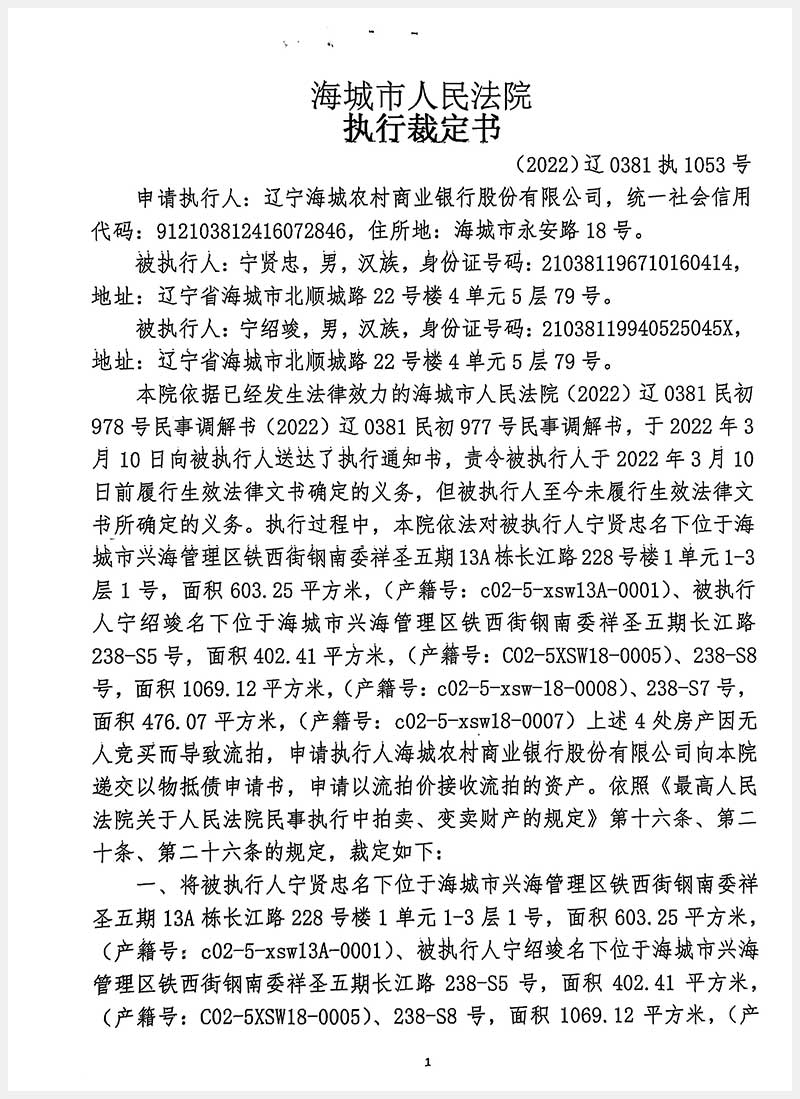 地址:海城市兴海管理区铁西街钢南委祥圣五期 标的号:215-1