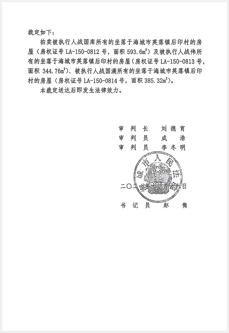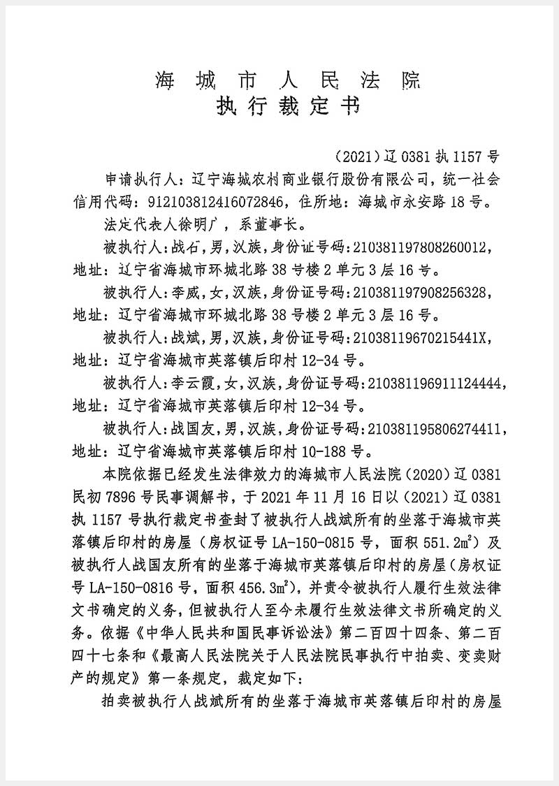 名称:海城市英落镇后窨村5处房产 面积:2331.18㎡ 浏览次数:1029
