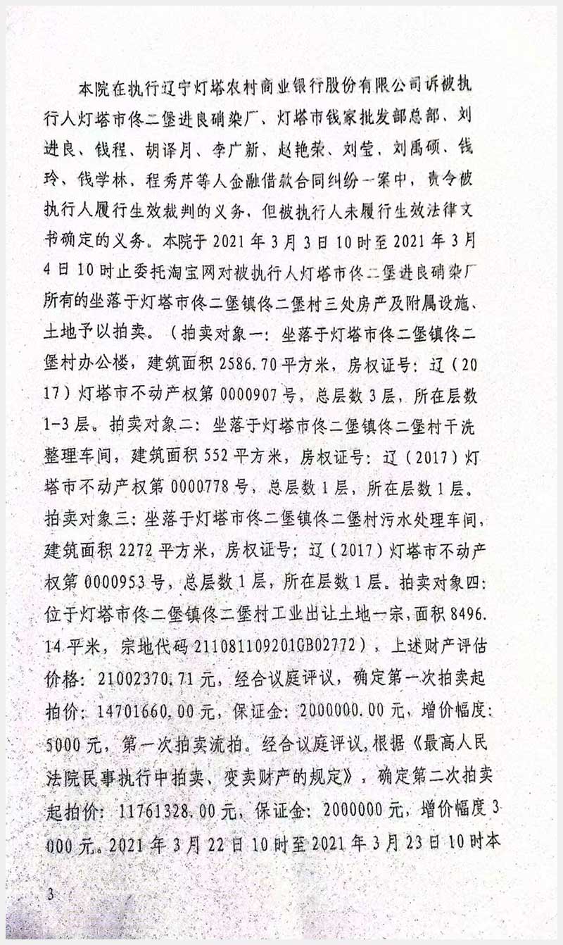 名称:灯塔市佟二堡镇佟二堡村房产及土地使用权 面积:房产:5,410.7㎡;土地:8,496.14㎡ 浏览次数:290