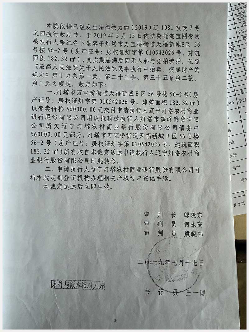名称:灯塔市万宝桥街道天福新城E区56号楼56-2号房产 面积:182.32㎡ 浏览次数:275