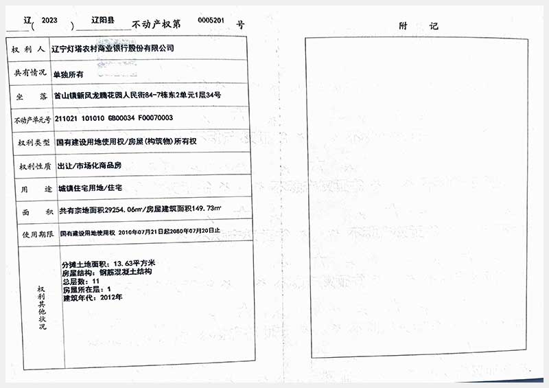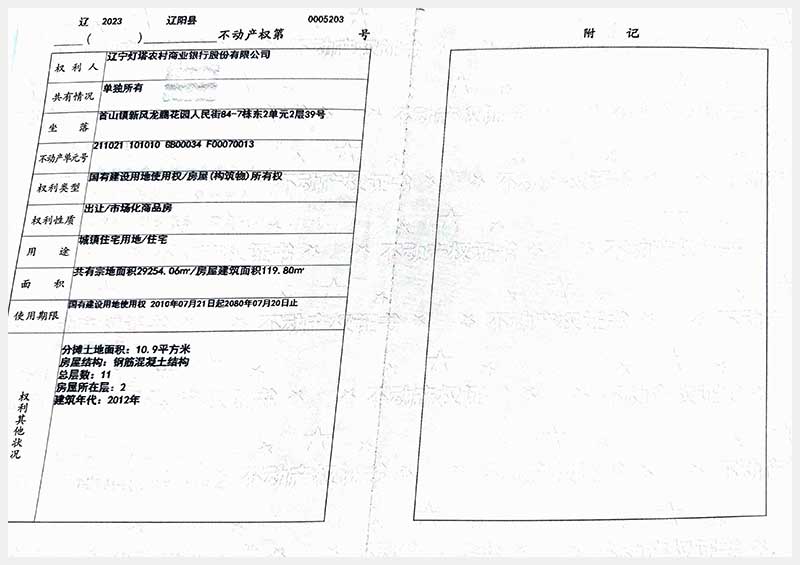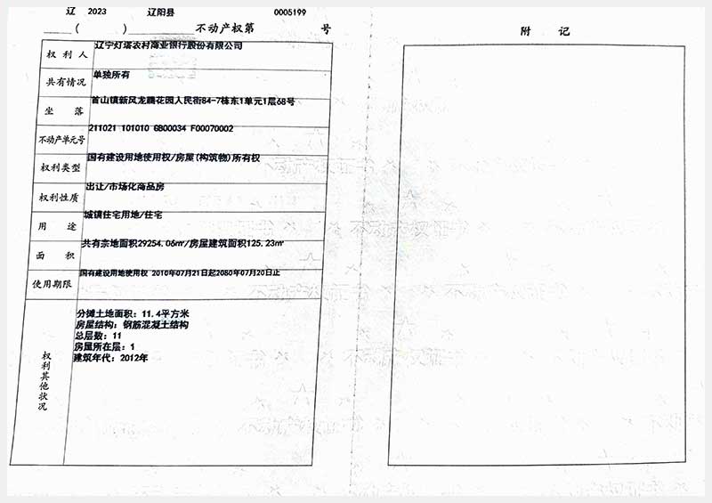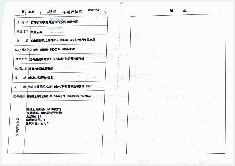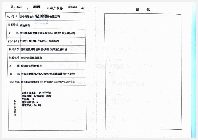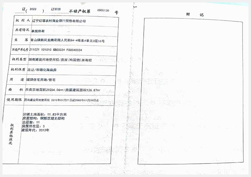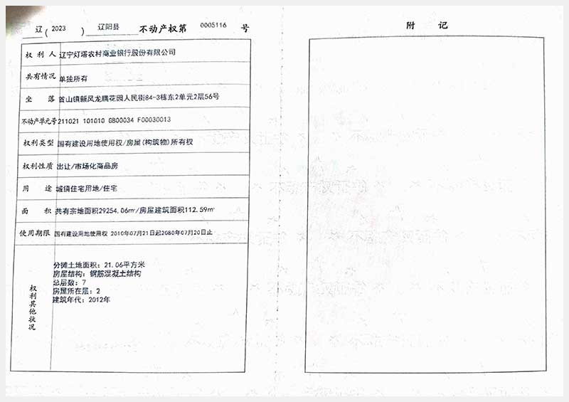 58号 辽阳市首山镇新风龙腾花园人民街84栋房产