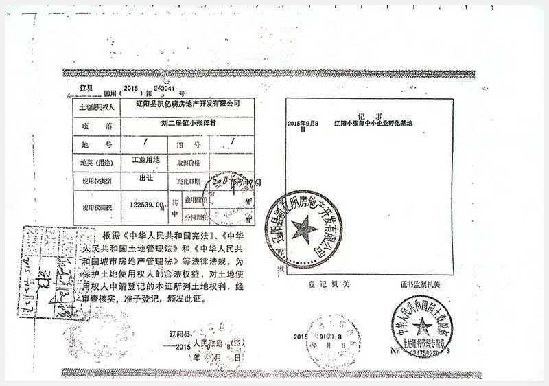 名称:辽阳县刘二堡镇小张郎村土地使用权 面积:122539㎡ 浏览次数:9