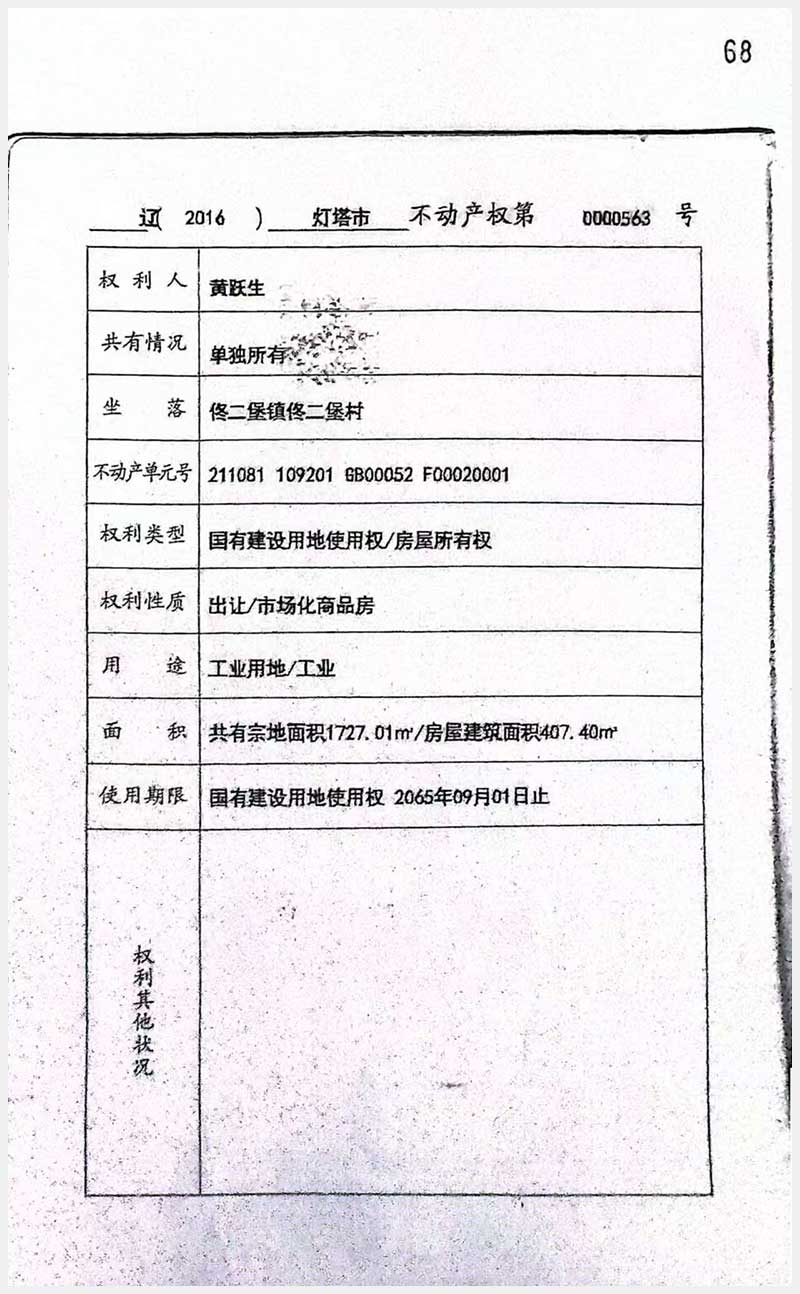 71号 灯塔市佟二堡镇佟二堡村房产及土地使用权