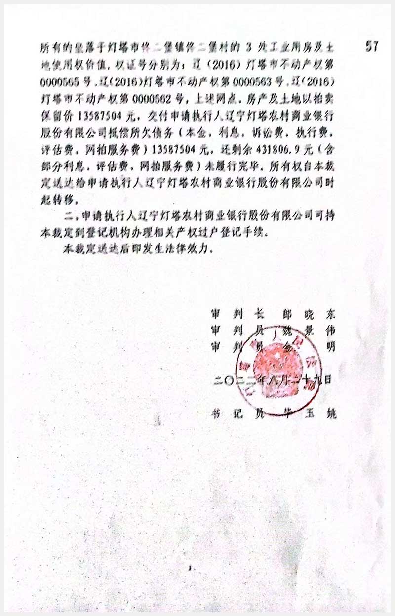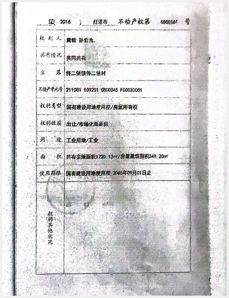 名称:灯塔市佟二堡镇佟二堡村房产及土地使用权 面积:房产:1954.46㎡;土地:1727.01㎡ 浏览次数:8