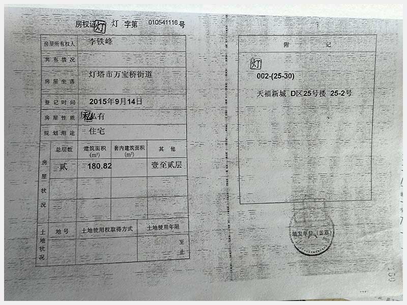 名称:灯塔市万宝桥街道天福新城D区25号楼25-2号房产 面积:180.82㎡ 浏览次数:8